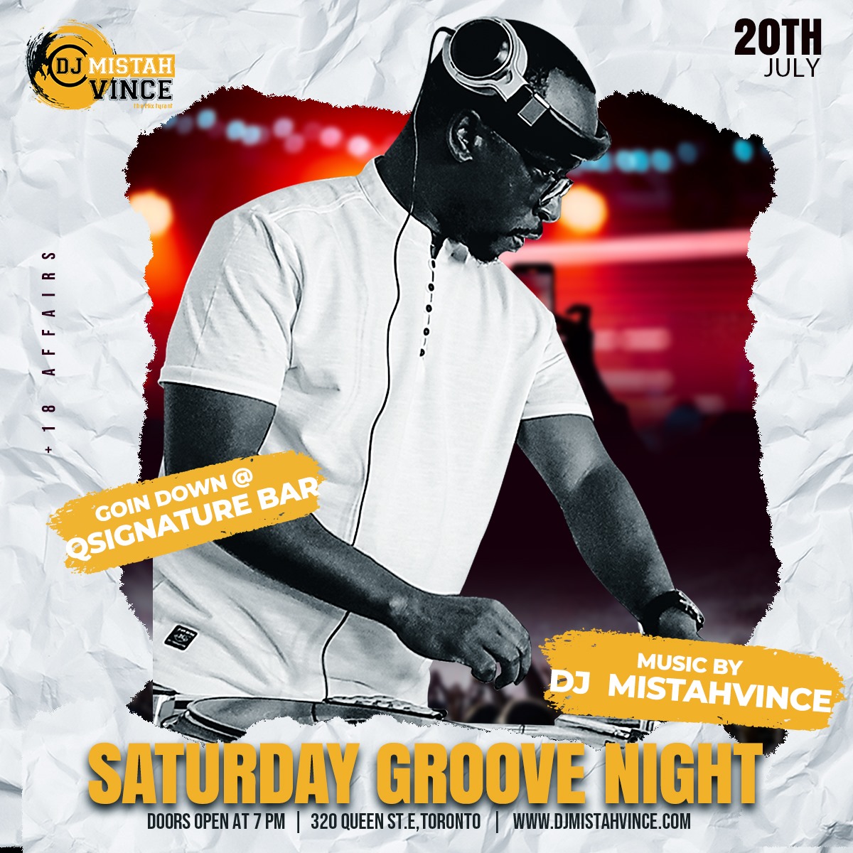 FeaturedQsignature Qsignature, 320 Queen St E, Toronto, ON M5A 1S8, Toronto, Ontario, CanadaGet ready for a night full of non-stop dancing, good vibes, and a celebration of the timeless power of groove with The Mix Tyrant - Dj MistahVince.